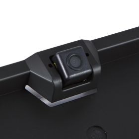 Камера заднего обзора в рамке номерного знака, с углом обзора 140 градусов, разрешением 480, системой цветности сигнала NTSC, минимальным освещением 0,2 Люкс и наличием парковочных линий.