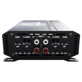 Усилитель прекрасно показывает себя в системах с процессором (внешним или встроенным в ГУ, как, например, в моделях серии Kraken). В этом случае одна пара каналов работает на твитеры, вторая – на мидбасовые динамики. Отключите встроенные кроссоверные фильтры усилителя (положение OFF), частотное деление между полосами в таких системах берет на себя процессор.