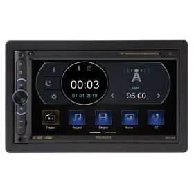 Бездисковый мультимедийный центр с большым ЖК экран 177 мм (7") и высоким разрешением 1024х600 пикселей, повышенной контрастности и антибликовым покрытием. Поддерживает современные цифровые носители – USB-накопители SD-карты с объёмом до 256 Гб, беспроводная технология Bluetooth® (versia 4.2) работающий в режимах hands-free и высококачественной передачи потокового аудио со смартфона, а так же режим SWC (программирование штатных кнопок управления воспроизведением, находящихся на рулевом колесе автомобиля).